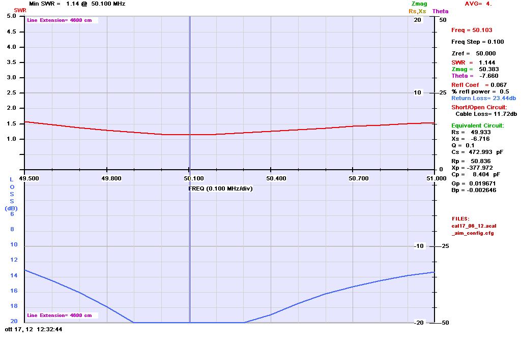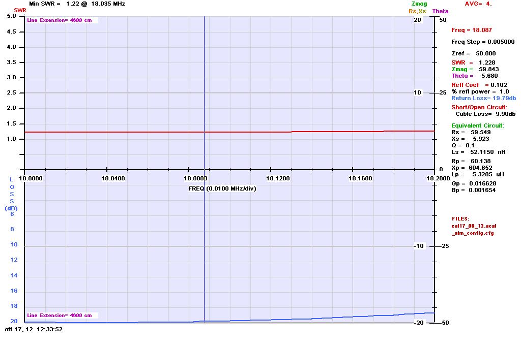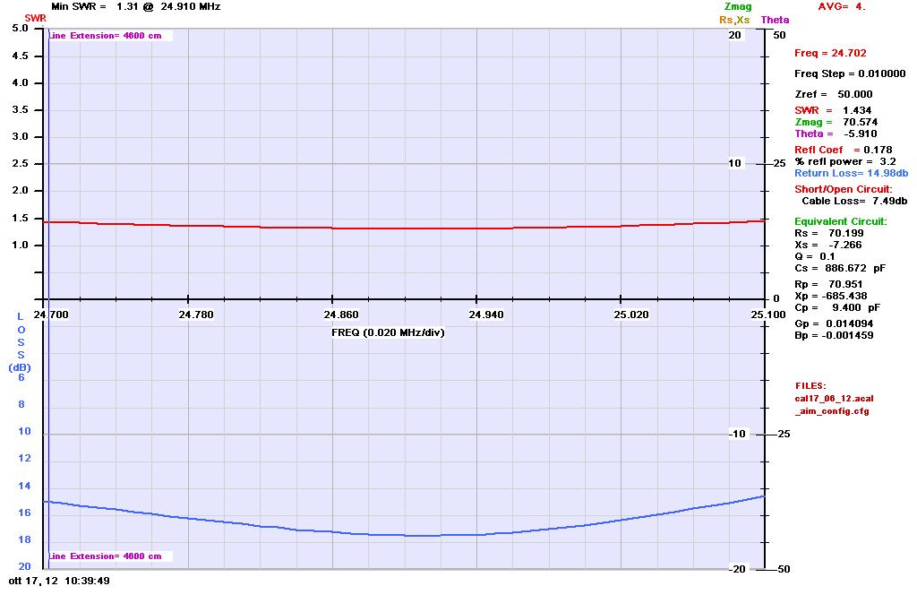 Grafico delle curve di ROS e return loss nella banda da 17, 12 e 6m